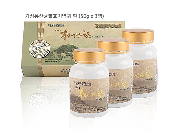 한국해양 후코이단 환은 미역 포자엽에서 고순로 추출된 후코이단 분말(후코이단 80% 이상)과 부산 특산물 기장 미역귀의 유산균발효공법
